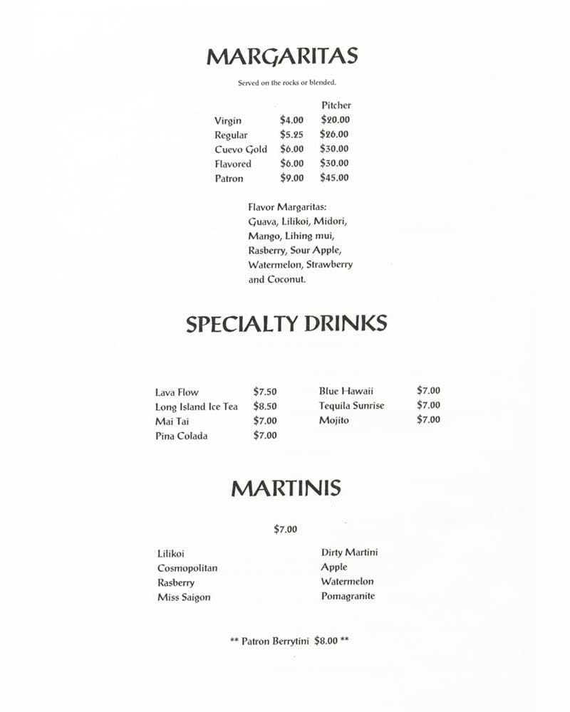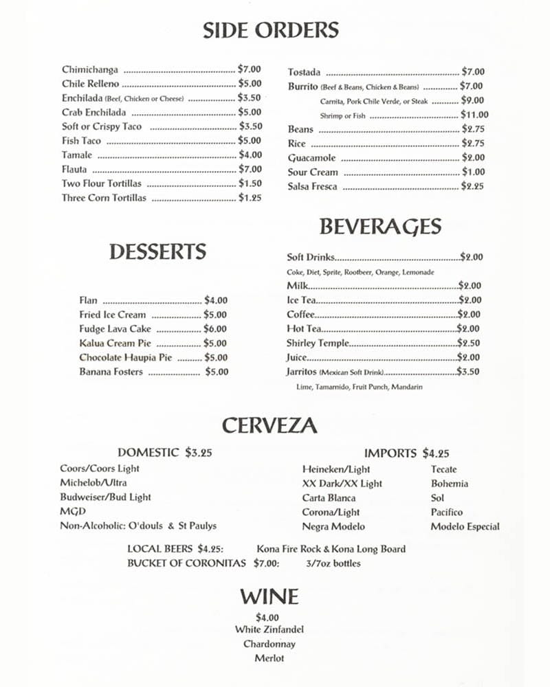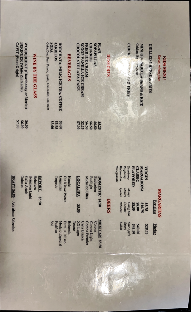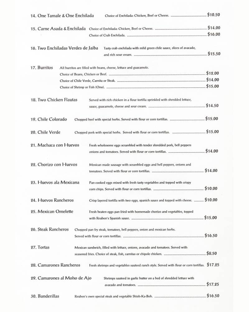 Reuben's Mexican Food, located in Hilo, Hawaii, offers a vibrant and authentic Mexican dining experience. The menu features a variety of botanas, combination plates, a la carte options, and even happy hour specials. From the flavorful Carne Asada to the delicious Fish Tacos, each dish is prepared with fresh ingredients and traditional Mexican herbs.